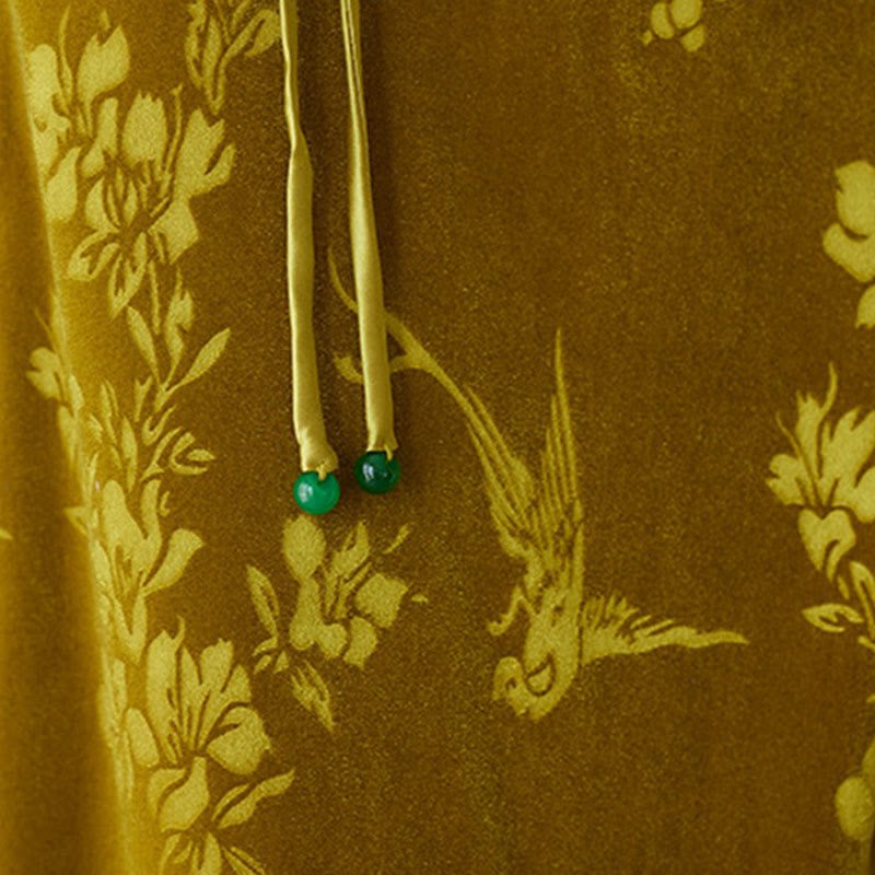 Damskie spodnie żakardowe z wysokim stanem i szerokimi nogawkami, z bawełny, podszyte polarem i kieszeniami, z Buddha Stones - Nawłoć - US8-10,UK/AU12-14,EU40-42 (2XL) - image 1