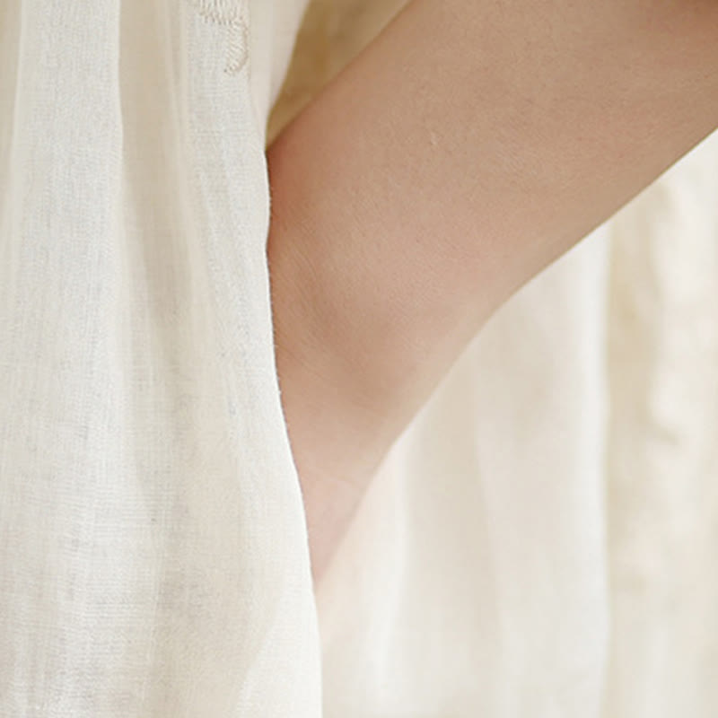 Sukienka midi z bawełny i lnu z motywem Buddha Stones w kolorze beżowym, z haftem i rękawami trzy czwarte, z kieszeniami