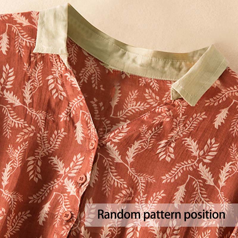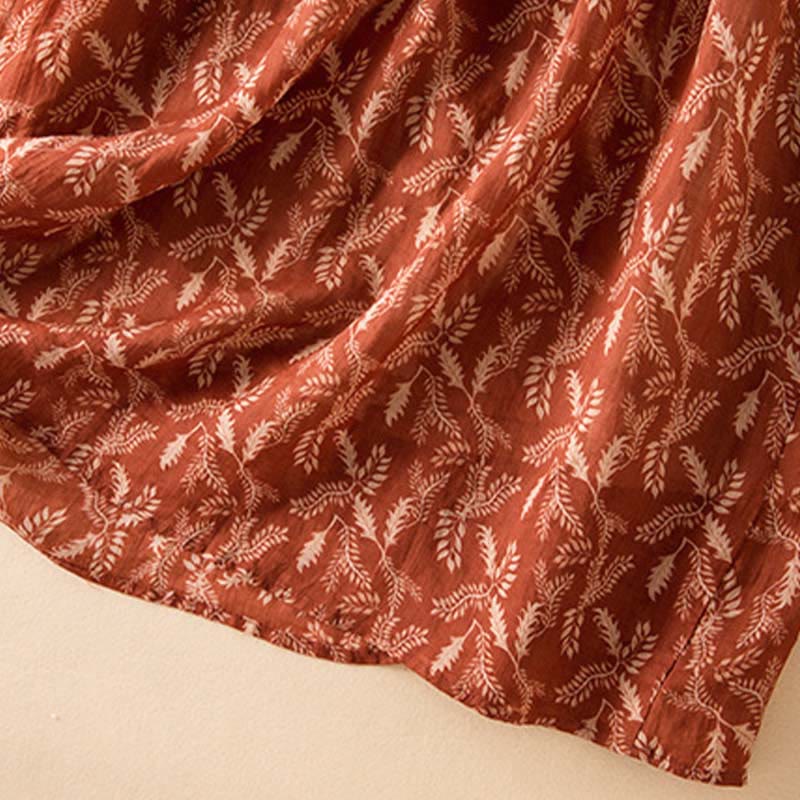 Sukienka midi z kontrastowym kwiatowym wzorem i półrękawem w kwiaty Buddha Stones z kieszeniami - Cegła ogniotrwała - US12, UK/AU16, EU44 (3XL) - image 20