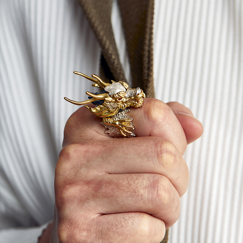 - Ps: Pierścień jest odpinany. Głowę smoka można zdjąć i używać jako wisiorka. (Łańcuszek naszyjnika nie jest dołączony.)