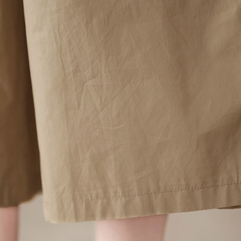 Buddha Stones Spodnie damskie Capri z szerokimi nogawkami i kieszeniami, proste, zapinane z boku na guziki - image 0