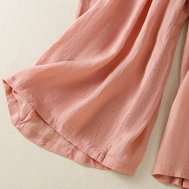 Spodnie damskie z szerokimi nogawkami i kieszeniami z haftem i ściągaczem Buddha Stones Commute z bawełny - image 48