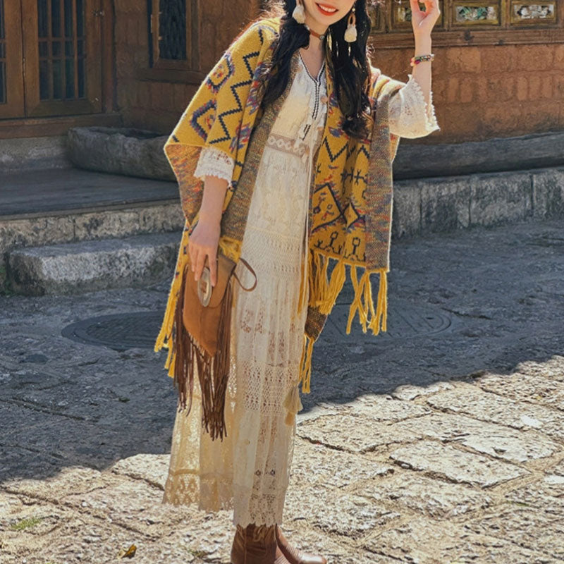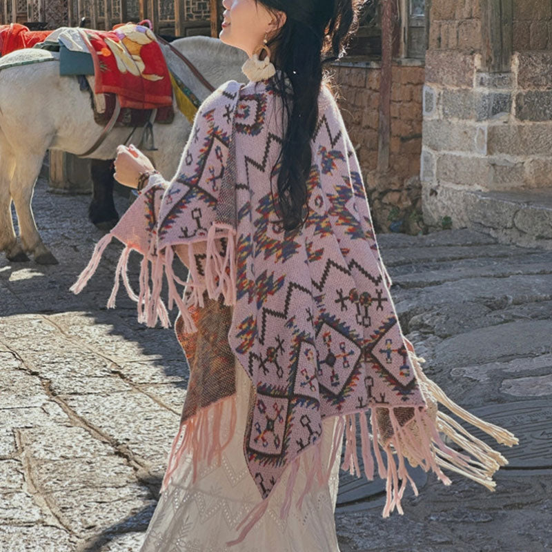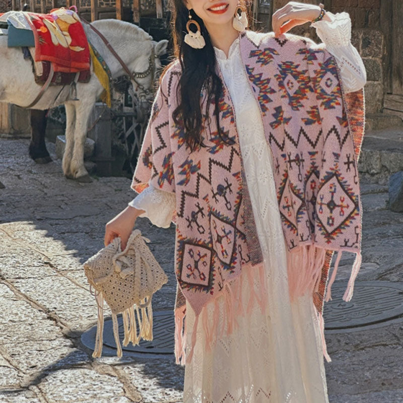 Szal Buddha Stones Tibetan Shawl Striped Wrap łączy wygodę z duchową symboliką. Idealny na zimowe podróże, ten przytulny, dzianinowy szalik ma geometryczny wzór w paski, symbolizujący stabilność i przejrzystość . To idealny dodatek dla tych, którzy szukają zarówno fizycznego ciepła , jak i odrobiny duchowego wglądu podczas podróży.