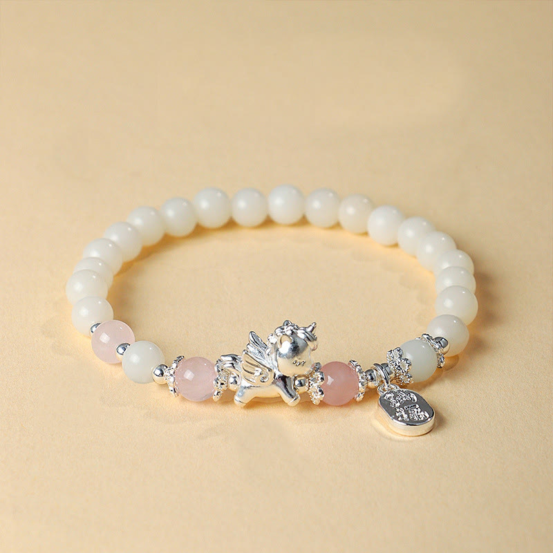 Bransoletka z Buddha Stones ze srebra próby 999, Rok Konia, z naturalnym czarnym obsydianem i nasionami Bodhi