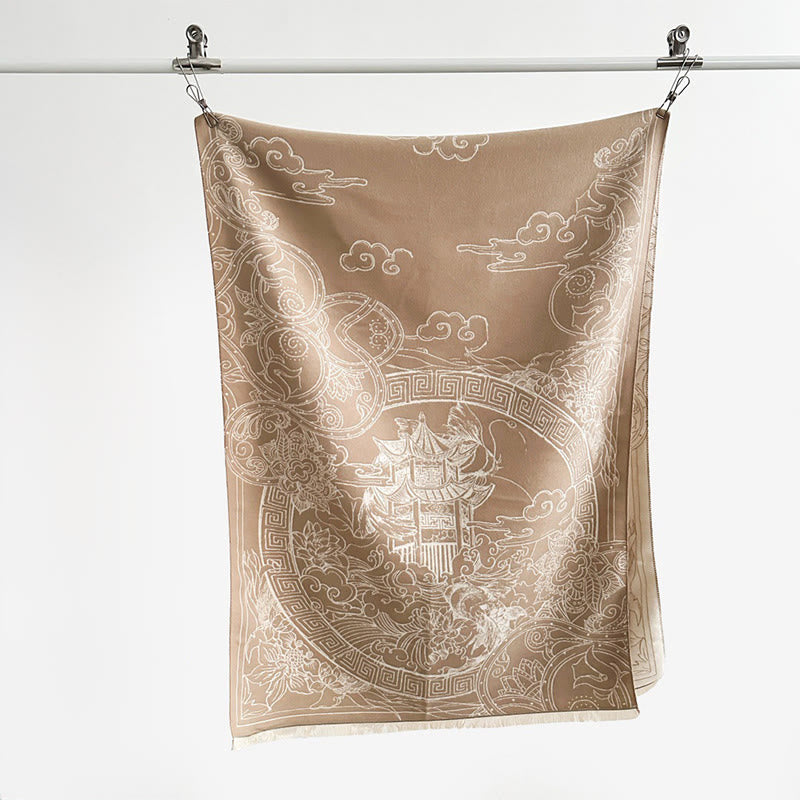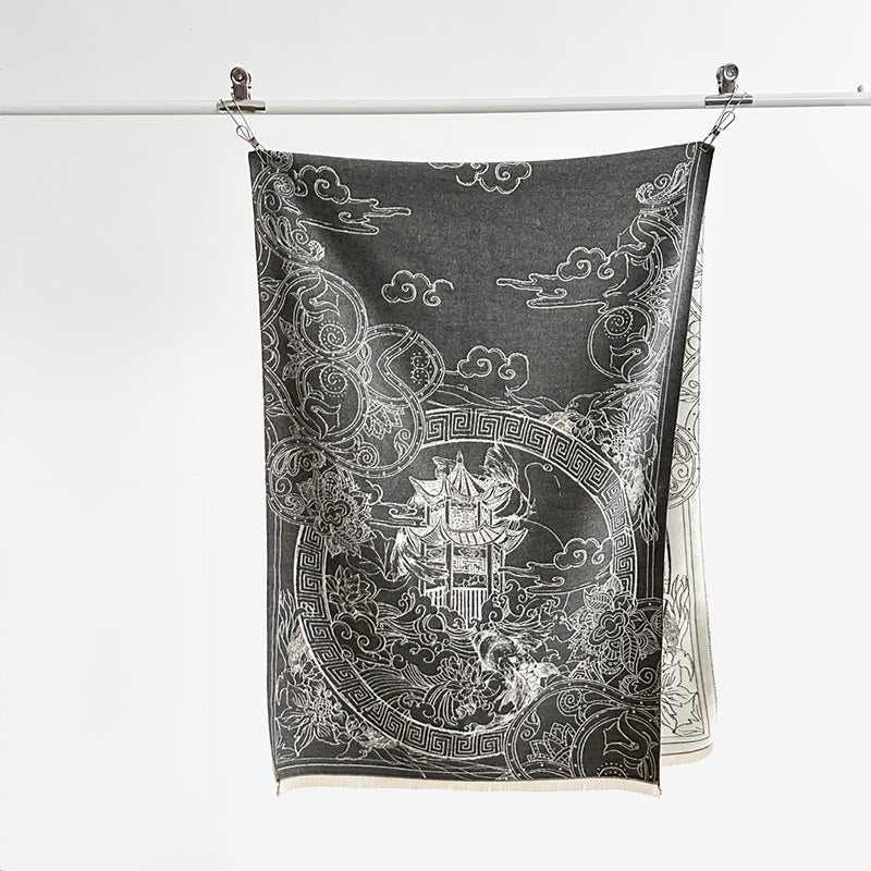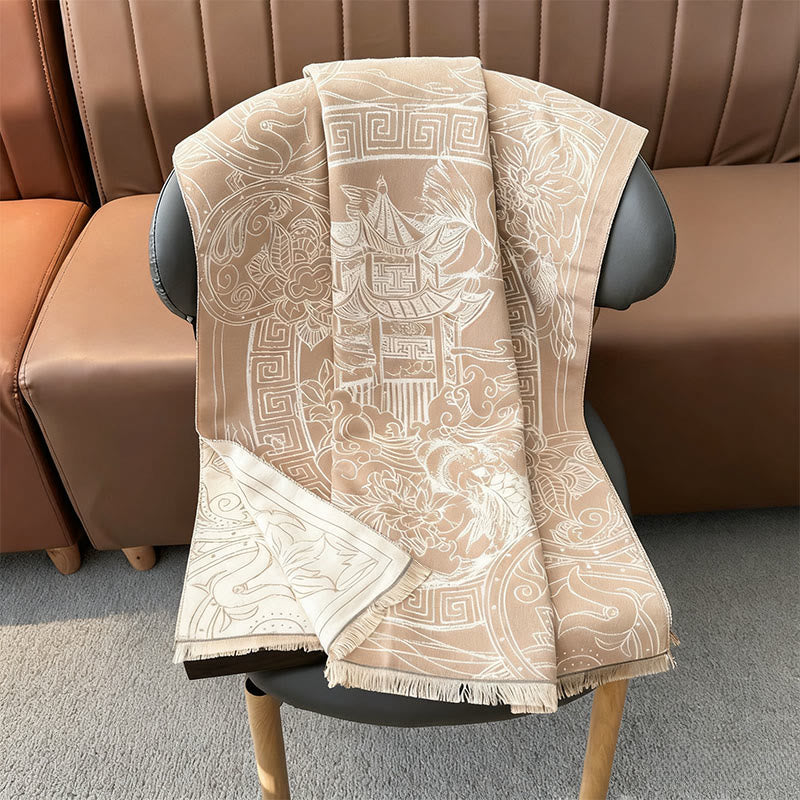 Buddha Stones, jesienny pawilon, kwiaty ryby Koi, fale, przytulny szalik - Szary - 180*65 cm - image 0