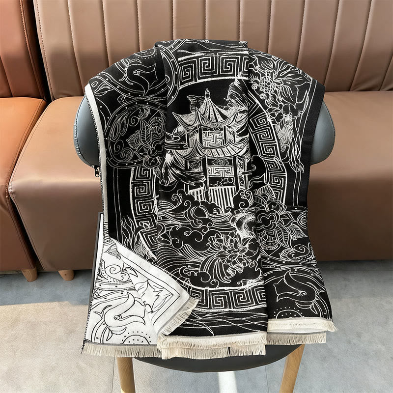 Buddha Stones, jesienny pawilon, kwiaty ryby Koi, fale, przytulny szalik - Czarny - 180*65 cm - image 4